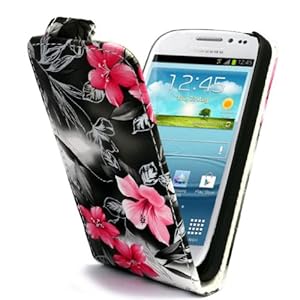 Coque SAMSUNG GALAXY S4 MINI i9190 Etui Noir PU Cuir Clapet Housse avec des fleurs roses: Amazon
